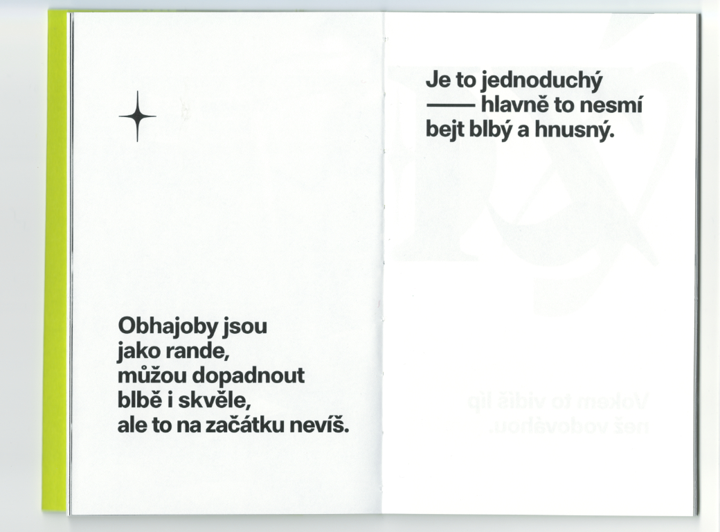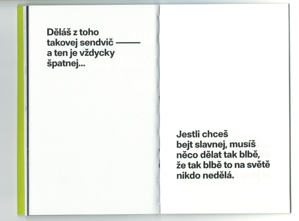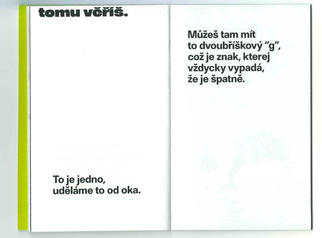 The publication was created as a tribute to a former assistant of the studio. The book is composed of quotes gathered from former students, which were spoken by the assistant during consultations. Similarly, I couldn't resist the opportunity to typeset it using typographies that were created during his tenure in the studio, serving as a reference to his excellent teaching methods.